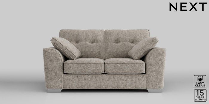 6.10.9 Buy Stamford Buttoned Back 2 Seater Small Sofa Chunky Boucle Easy Clean Dove Large Square Angle - Chrome Metal from the Next UK online shop Click here to use our accessible website