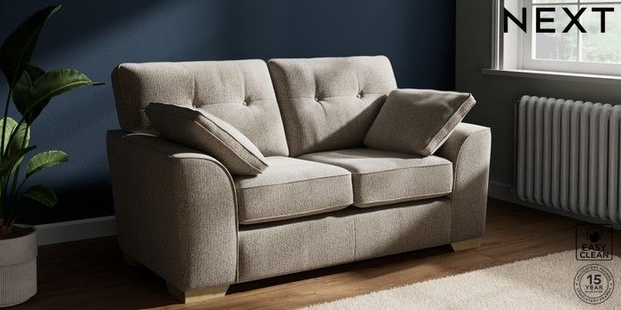 7.2.10 Buy Stamford Buttoned Back 2 Seater Small Sofa Chunky Boucle Easy Clean Dove Large Square Angle - Light from the Next UK online shop Click here to use our accessible website