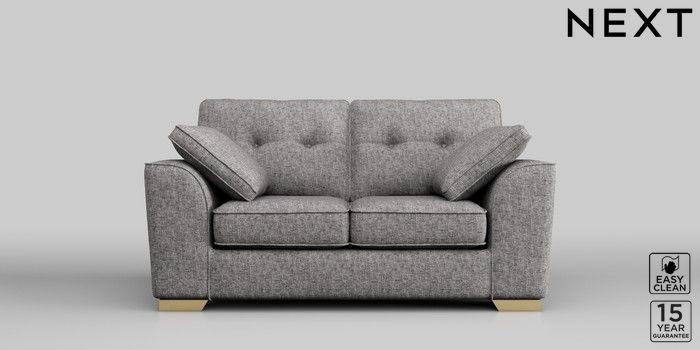 6.11.4 Buy Stamford Buttoned Back 2 Seater Small Sofa Chunky Boucle Easy Clean Light Grey Large Square Angle - Brushed Brass from the Next UK online shop Click here to use our accessible website