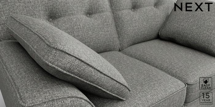 6.11.4 Buy Stamford Buttoned Back 2 Seater Small Sofa Chunky Boucle Easy Clean Mid Grey Large Square Angle - Chrome Metal from the Next UK online shop Click here to use our accessible website