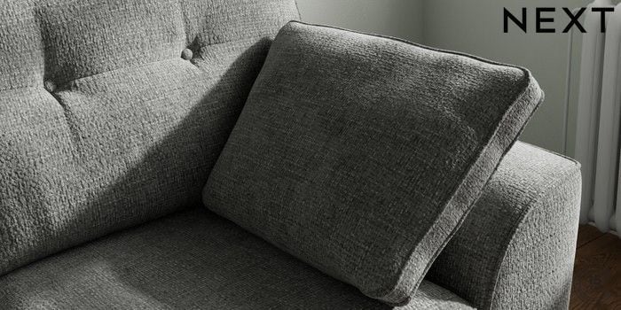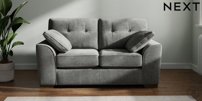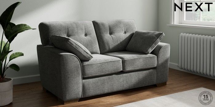 7.2.10 Buy Stamford Buttoned Back 2 Seater Small Sofa Chunky Chenille Dark Grey Large Square Angle - Mid from the Next UK online shop Click here to use our accessible website