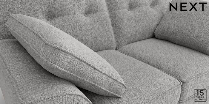 6.11.4 Buy Stamford Buttoned Back 2 Seater Small Sofa Chunky Chenille Light Grey Large Square Angle - Chrome Metal from the Next UK online shop Click here to use our accessible website
