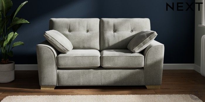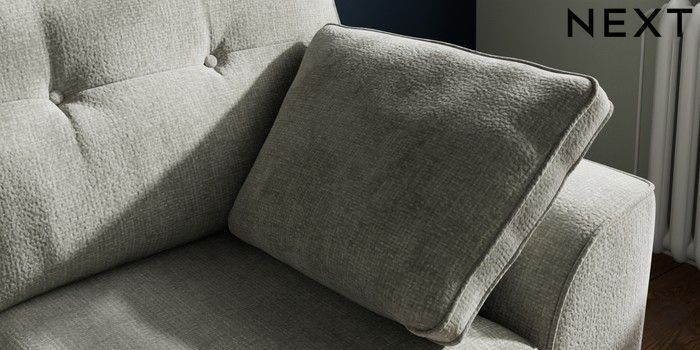 7.2.10 Buy Stamford Buttoned Back 2 Seater Small Sofa Chunky Chenille Light Grey Large Square Angle - Light from the Next UK online shop Click here to use our accessible website