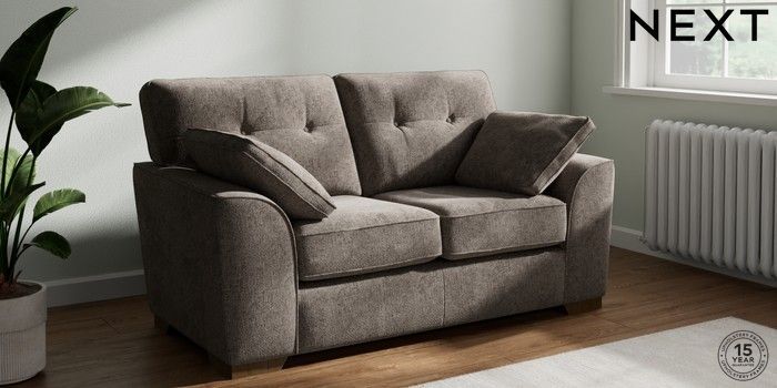 7.2.10 Buy Stamford Buttoned Back 2 Seater Small Sofa Chunky Chenille Mink Brown Large Square Angle - Mid from the Next UK online shop Click here to use our accessible website