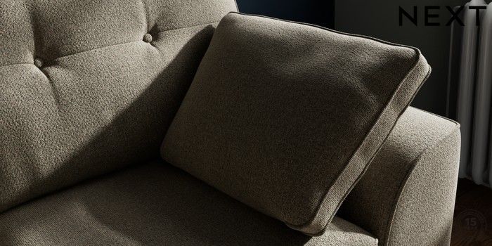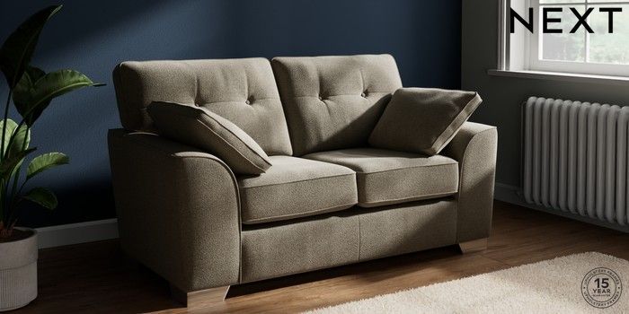 7.2.10 Buy Stamford Buttoned Back 2 Seater Small Sofa Chunky Marl Light Olive Green Large Square Angle - Chrome Metal from the Next UK online shop Click here to use our accessible website