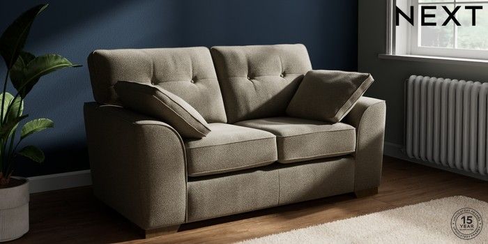 7.2.10 Buy Stamford Buttoned Back 2 Seater Small Sofa Chunky Marl Light Olive Green Large Square Angle - Mid from the Next UK online shop Click here to use our accessible website