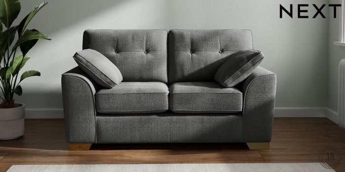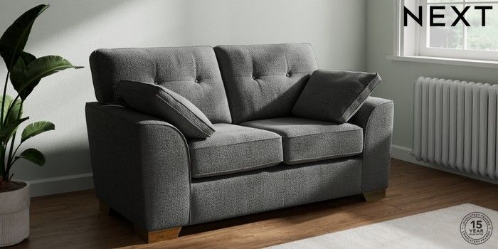 7.2.10 Buy Stamford Buttoned Back 2 Seater Small Sofa Chunky Texture Dark Grey Large Square Angle - Brushed Brass from the Next UK online shop Click here to use our accessible website