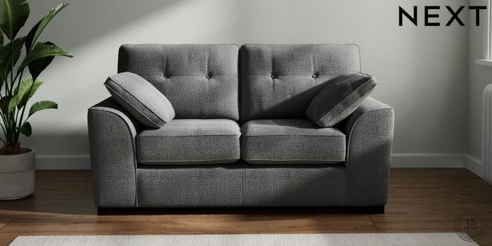 7.2.10 Buy Stamford Buttoned Back 2 Seater Small Sofa Chunky Texture Dark Grey Large Square Angle - Dark from the Next UK online shop Click here to use our accessible website