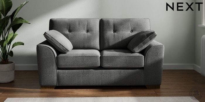 7.2.10 Buy Stamford Buttoned Back 2 Seater Small Sofa Chunky Texture Dark Grey Large Square Angle - Mid from the Next UK online shop Click here to use our accessible website