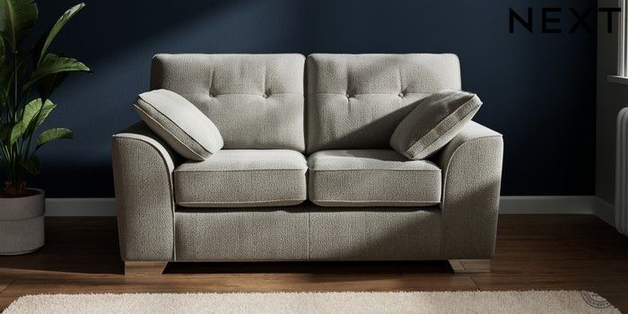 7.2.10 Buy Stamford Buttoned Back 2 Seater Small Sofa Chunky Texture Dove Large Square Angle - Chrome Metal from the Next UK online shop Click here to use our accessible website