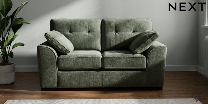 7.2.10 Buy Stamford Buttoned Back 2 Seater Small Sofa Chunky Texture Mid Forest Green Large Square Angle - Dark from the Next UK online shop Click here to use our accessible website