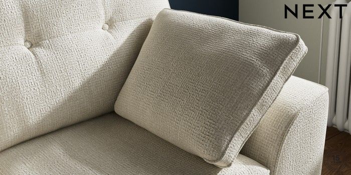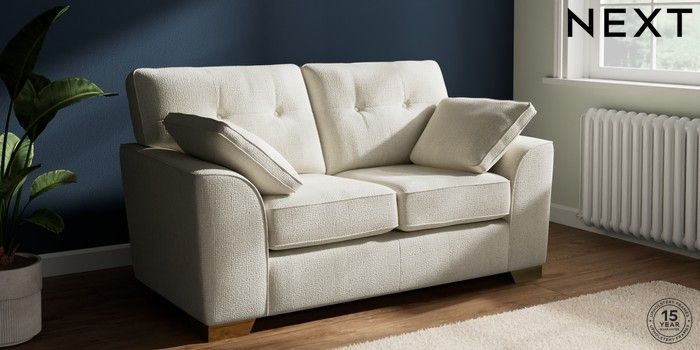 7.2.10 Buy Stamford Buttoned Back 2 Seater Small Sofa Chunky Texture Oyster Large Square Angle - Brushed Brass from the Next UK online shop Click here to use our accessible website