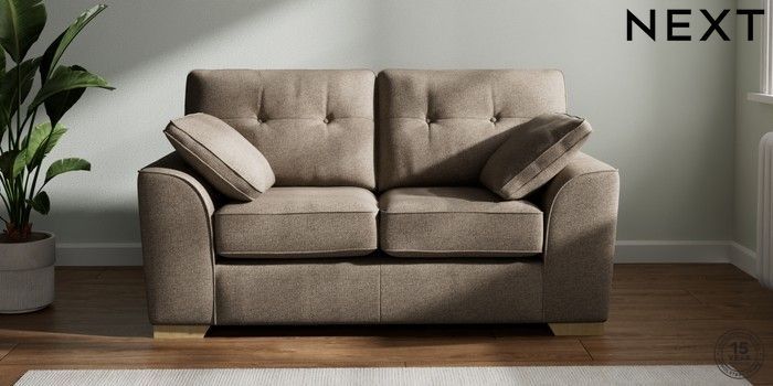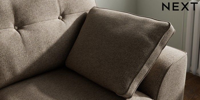 7.2.10 Buy Stamford Buttoned Back 2 Seater Small Sofa Chunky Weave Dark Natural Large Square Angle - Light from the Next UK online shop Click here to use our accessible website
