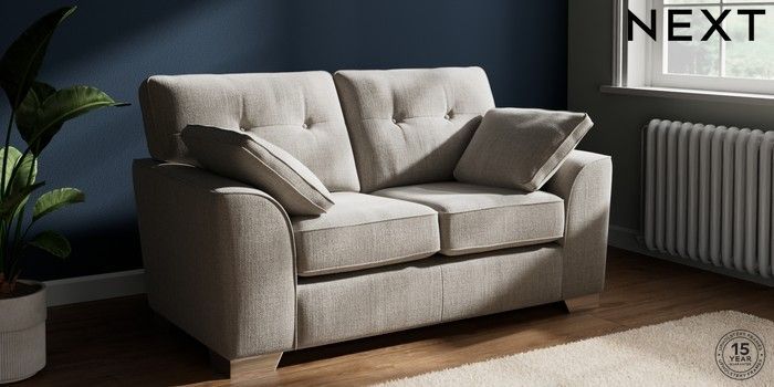 7.2.10 Buy Stamford Buttoned Back 2 Seater Small Sofa Chunky Weave Dove Grey Large Square Angle - Chrome Metal from the Next UK online shop Click here to use our accessible website