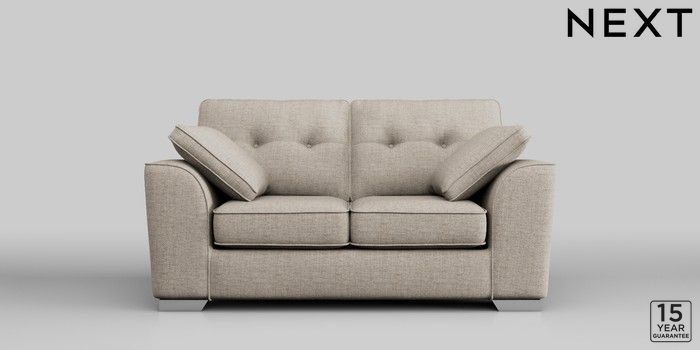 6.11.4 Buy Stamford Buttoned Back 2 Seater Small Sofa Chunky Weave Mid Natural Large Square Angle - Chrome Metal from the Next UK online shop Click here to use our accessible website