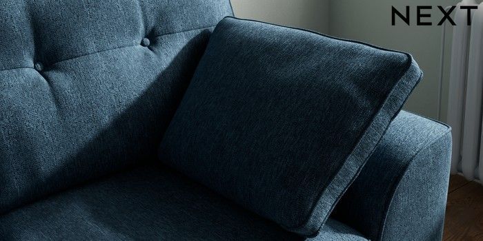 7.2.10 Buy Stamford Buttoned Back 2 Seater Small Sofa Cotswold Chenille Dark Blue Large Square Angle - Dark from the Next UK online shop Click here to use our accessible website