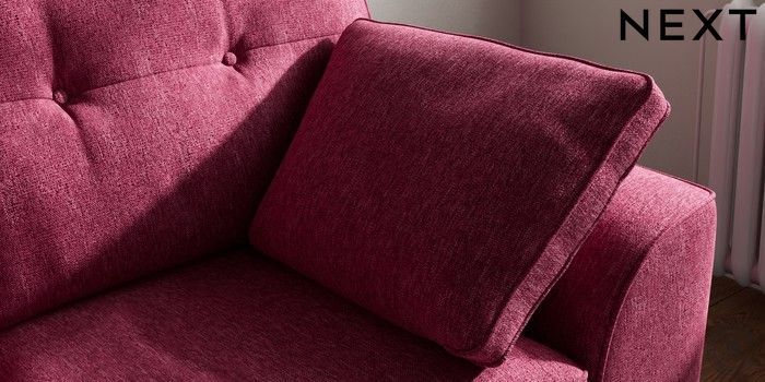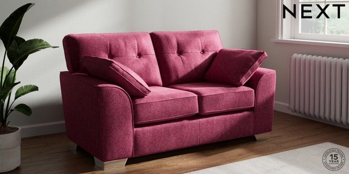 7.2.10 Buy Stamford Buttoned Back 2 Seater Small Sofa Cotswold Chenille Dark Raspberry Pink Large Square Angle - Chrome Metal from the Next UK online shop Click here to use our accessible website