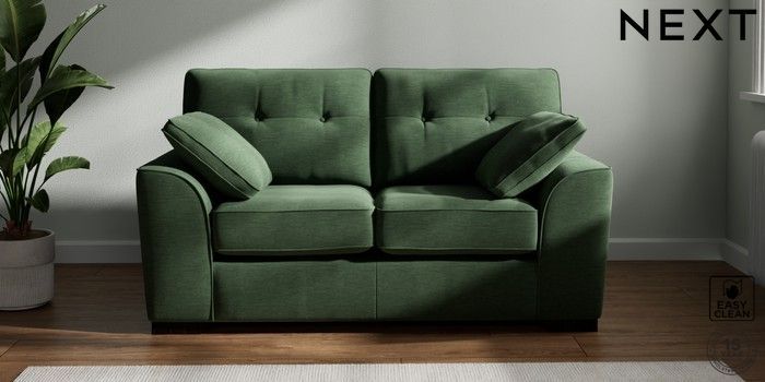 7.2.10 Buy Stamford Buttoned Back 2 Seater Small Sofa Fine Chenille Easy Clean Mid Khaki Green Large Square Angle - Dark from the Next UK online shop Click here to use our accessible website