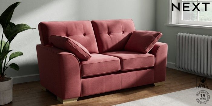 7.2.10 Buy Stamford Buttoned Back 2 Seater Small Sofa Fine Chenille Easy Clean Mid Pink Large Square Angle - Light from the Next UK online shop Click here to use our accessible website