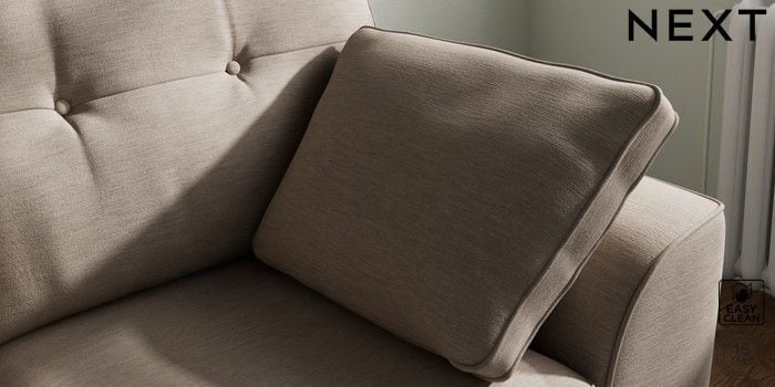 7.2.10 Buy Stamford Buttoned Back 2 Seater Small Sofa Fine Chenille Easy Clean Mid Taupe Brown Large Square Angle - Dark from the Next UK online shop Click here to use our accessible website