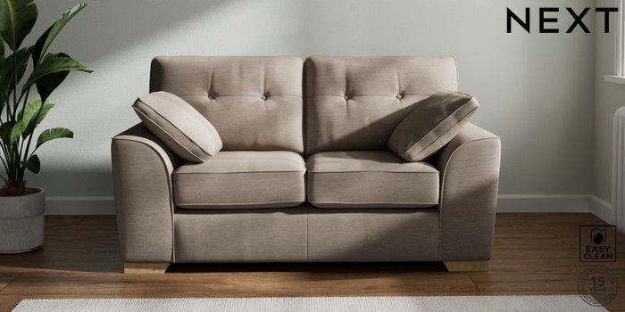 7.2.10 Buy Stamford Buttoned Back 2 Seater Small Sofa Fine Chenille Easy Clean Mid Taupe Brown Large Square Angle - Light from the Next UK online shop Click here to use our accessible website
