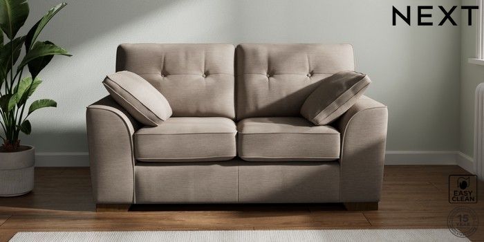 7.2.10 Buy Stamford Buttoned Back 2 Seater Small Sofa Fine Chenille Easy Clean Mid Taupe Brown Large Square Angle - Mid from the Next UK online shop Click here to use our accessible website