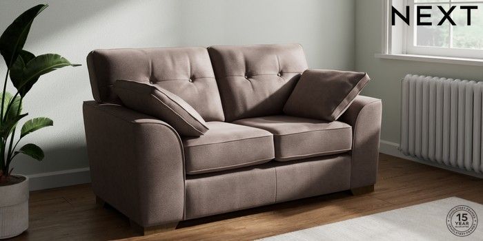 7.2.10 Buy Stamford Buttoned Back 2 Seater Small Sofa Luxe Chenille Mink Brown Large Square Angle - Mid from the Next UK online shop Click here to use our accessible website