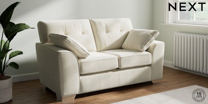 7.0.3 Buy Stamford Buttoned Back 2 Seater Small Sofa Luxe Chenille Oyster Large Square Angle - Chrome Metal from the Next UK online shop Click here to use our accessible website