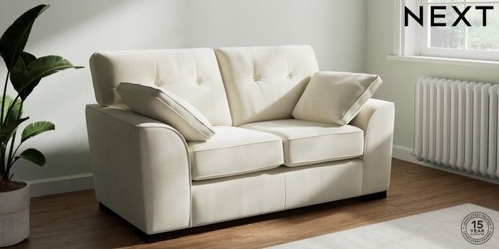 7.0.3 Buy Stamford Buttoned Back 2 Seater Small Sofa Luxe Chenille Oyster Large Square Angle - Dark from the Next UK online shop Click here to use our accessible website