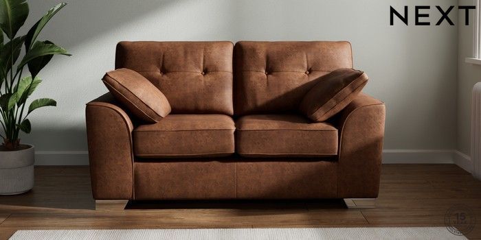 7.2.6 Buy Stamford Buttoned Back 2 Seater Small Sofa Monza Faux Leather Easy Clean Chestnut Brown Large Square Angle - Chrome Metal from the Next UK online shop Click here to use our accessible website