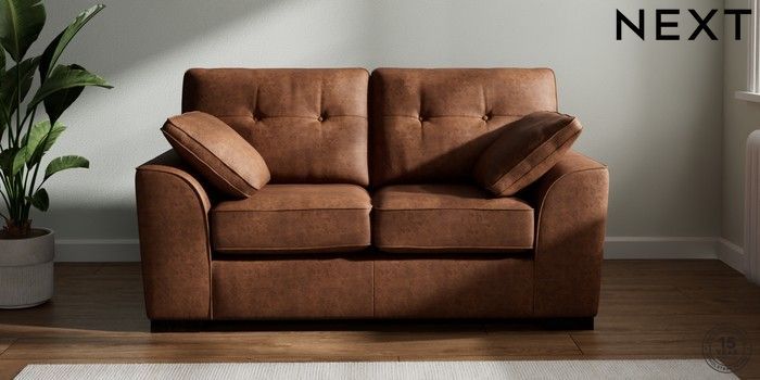7.2.6 Buy Stamford Buttoned Back 2 Seater Small Sofa Monza Faux Leather Easy Clean Chestnut Brown Large Square Angle - Dark from the Next UK online shop Click here to use our accessible website