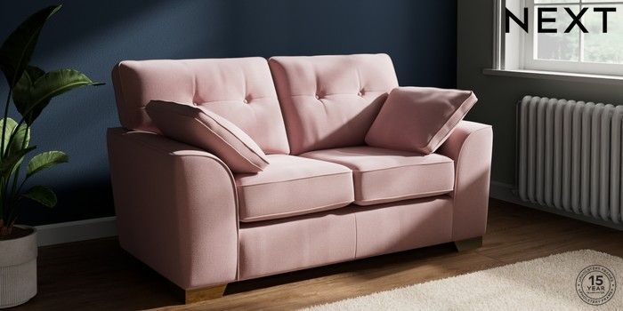 7.2.10 Buy Stamford Buttoned Back 2 Seater Small Sofa Natural Mix Light Rose Pink Large Square Angle - Brushed Brass from the Next UK online shop Click here to use our accessible website