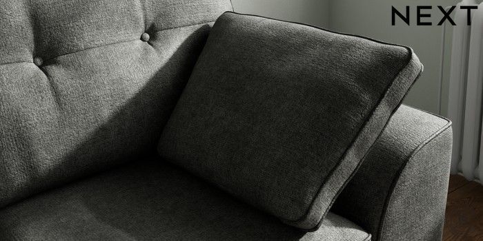 7.2.10 Buy Stamford Buttoned Back 2 Seater Small Sofa Plush Chenille Dark Grey Large Square Angle - Chrome Metal from the Next UK online shop Click here to use our accessible website