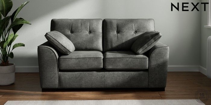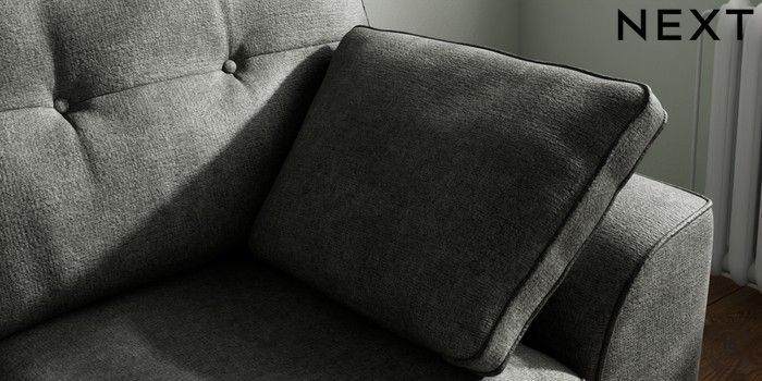 7.2.10 Buy Stamford Buttoned Back 2 Seater Small Sofa Plush Chenille Dark Grey Large Square Angle - Dark from the Next UK online shop Click here to use our accessible website