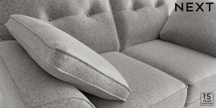 6.10.9 Buy Stamford Buttoned Back 2 Seater Small Sofa Plush Chenille Light Grey Large Square Angle - Chrome Metal from the Next UK online shop Click here to use our accessible website