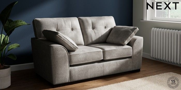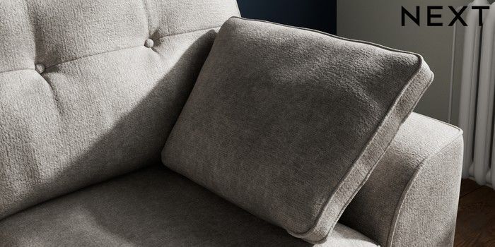 7.2.10 Buy Stamford Buttoned Back 2 Seater Small Sofa Plush Chenille Light Grey Large Square Angle - Dark from the Next UK online shop Click here to use our accessible website