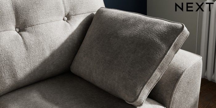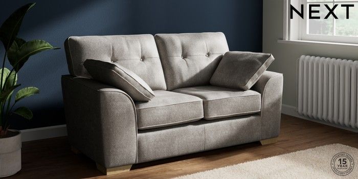 7.2.10 Buy Stamford Buttoned Back 2 Seater Small Sofa Plush Chenille Light Grey Large Square Angle - Light from the Next UK online shop Click here to use our accessible website