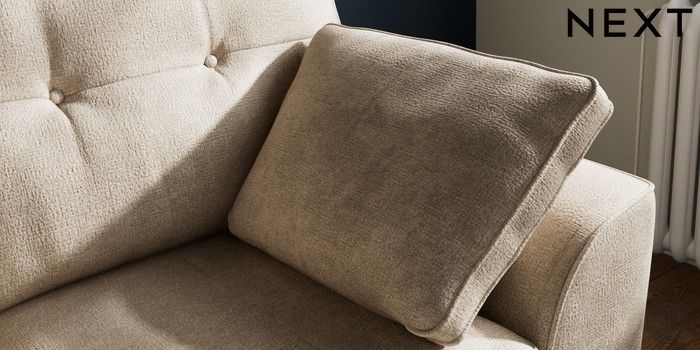 7.2.10 Buy Stamford Buttoned Back 2 Seater Small Sofa Plush Chenille Light Natural Large Square Angle - Light from the Next UK online shop Click here to use our accessible website