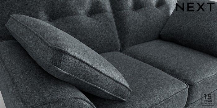 6.11.4 Buy Stamford Buttoned Back 2 Seater Small Sofa Plush Chenille Slate Blue Large Square Angle - Chrome Metal from the Next UK online shop Click here to use our accessible website
