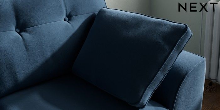 7.2.10 Buy Stamford Buttoned Back 2 Seater Small Sofa Plush Velvet Easy Clean Airforce Blue Large Square Angle - Light from the Next UK online shop Click here to use our accessible website
