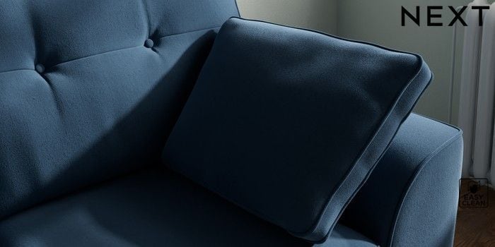 7.2.10 Buy Stamford Buttoned Back 2 Seater Small Sofa Plush Velvet Easy Clean Airforce Blue Large Square Angle - Mid from the Next UK online shop Click here to use our accessible website