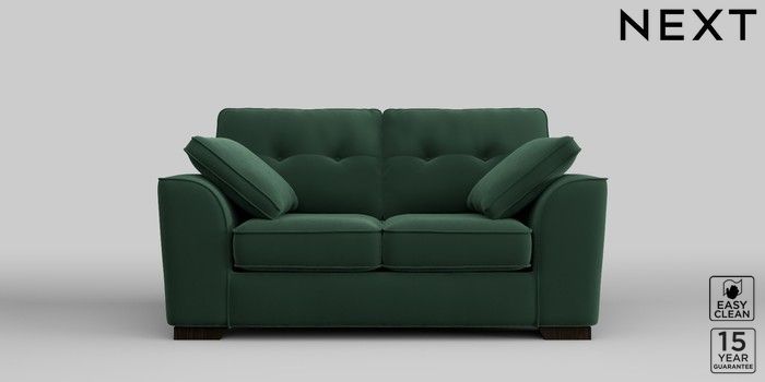 6.11.4 Buy Stamford Buttoned Back 2 Seater Small Sofa Plush Velvet Easy Clean Bottle Green Large Square Angle - Dark from the Next UK online shop Click here to use our accessible website