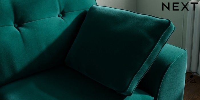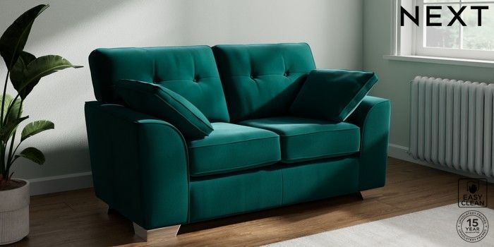 7.3.1 Buy Stamford Buttoned Back 2 Seater Small Sofa Plush Velvet Easy Clean Juniper Green Large Square Angle - Chrome Metal from the Next UK online shop Click here to use our accessible website