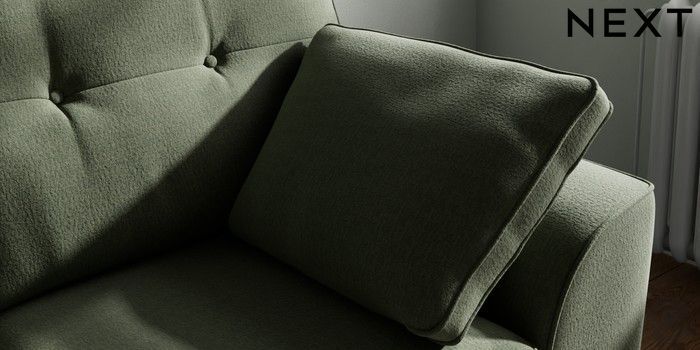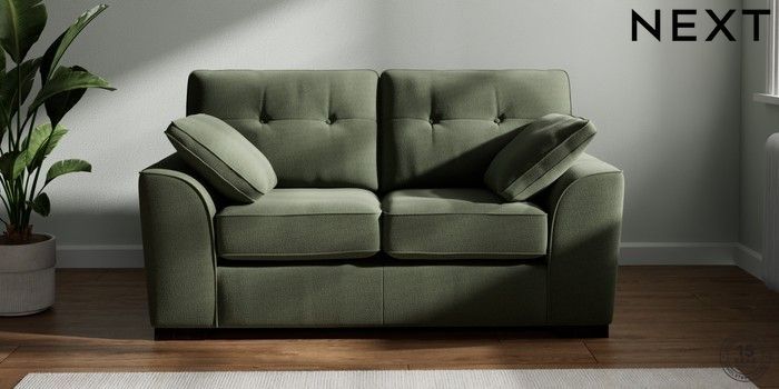 7.2.10 Buy Stamford Buttoned Back 2 Seater Small Sofa Relaxed Linen Look Dark Green Large Square Angle - Dark from the Next UK online shop Click here to use our accessible website