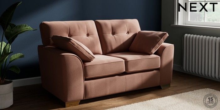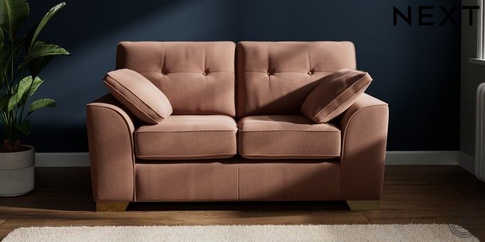 7.2.10 Buy Stamford Buttoned Back 2 Seater Small Sofa Relaxed Linen Look Light Rust Brown Large Square Angle - Brushed Brass from the Next UK online shop Click here to use our accessible website