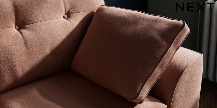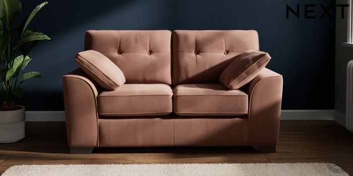 7.2.10 Buy Stamford Buttoned Back 2 Seater Small Sofa Relaxed Linen Look Light Rust Brown Large Square Angle - Gunmetal from the Next UK online shop Click here to use our accessible website