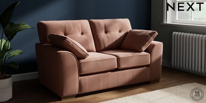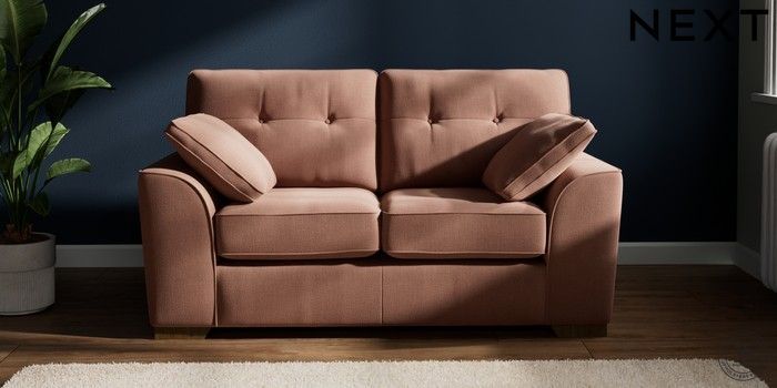 7.2.10 Buy Stamford Buttoned Back 2 Seater Small Sofa Relaxed Linen Look Light Rust Brown Large Square Angle - Mid from the Next UK online shop Click here to use our accessible website