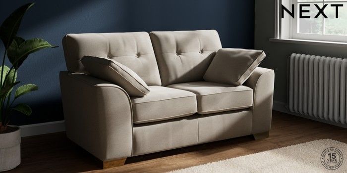 7.2.10 Buy Stamford Buttoned Back 2 Seater Small Sofa Ripple Chenille Light Natural Large Square Angle - Brushed Brass from the Next UK online shop Click here to use our accessible website