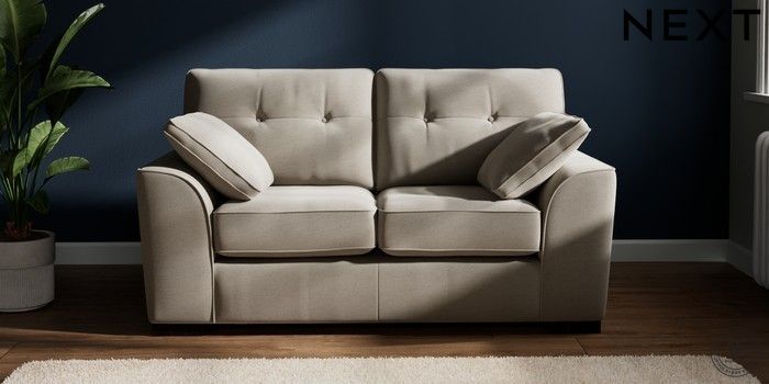 7.2.10 Buy Stamford Buttoned Back 2 Seater Small Sofa Ripple Chenille Light Natural Large Square Angle - Dark from the Next UK online shop Click here to use our accessible website