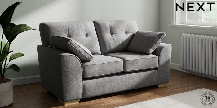 7.2.10 Buy Stamford Buttoned Back 2 Seater Small Sofa Studio Chenille Mid Grey Large Square Angle - Light from the Next UK online shop Click here to use our accessible website